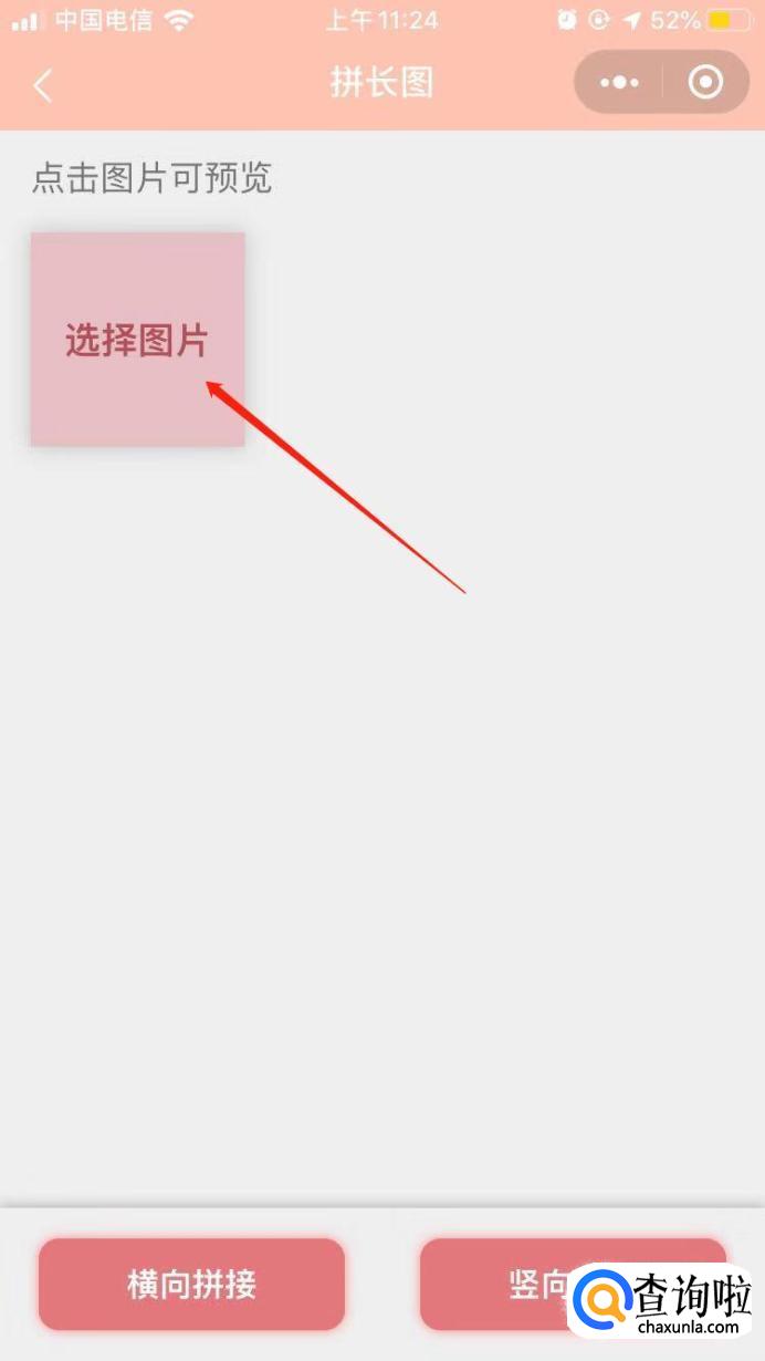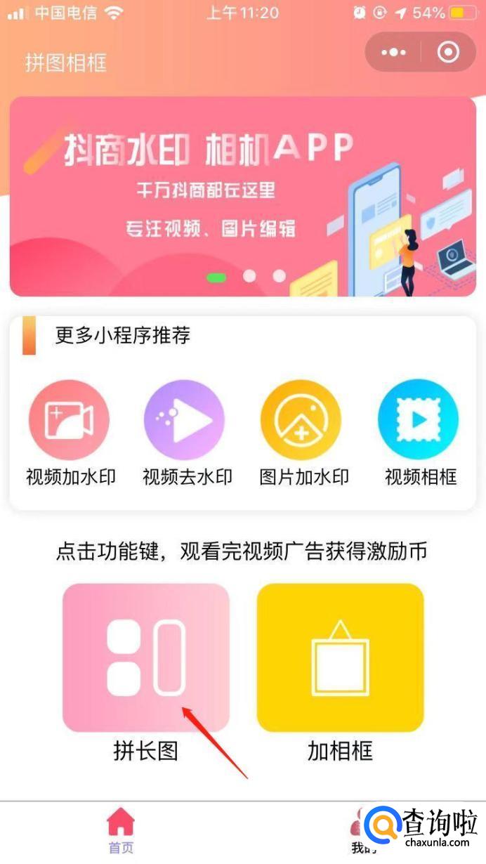 进入到这个小程序里面过后,我们可以在它的首页看到,拼图功能有两个,一个是“拼长图”,还有一个是“拼相框”,这里我们点击“拼长图”并进入到下一步。