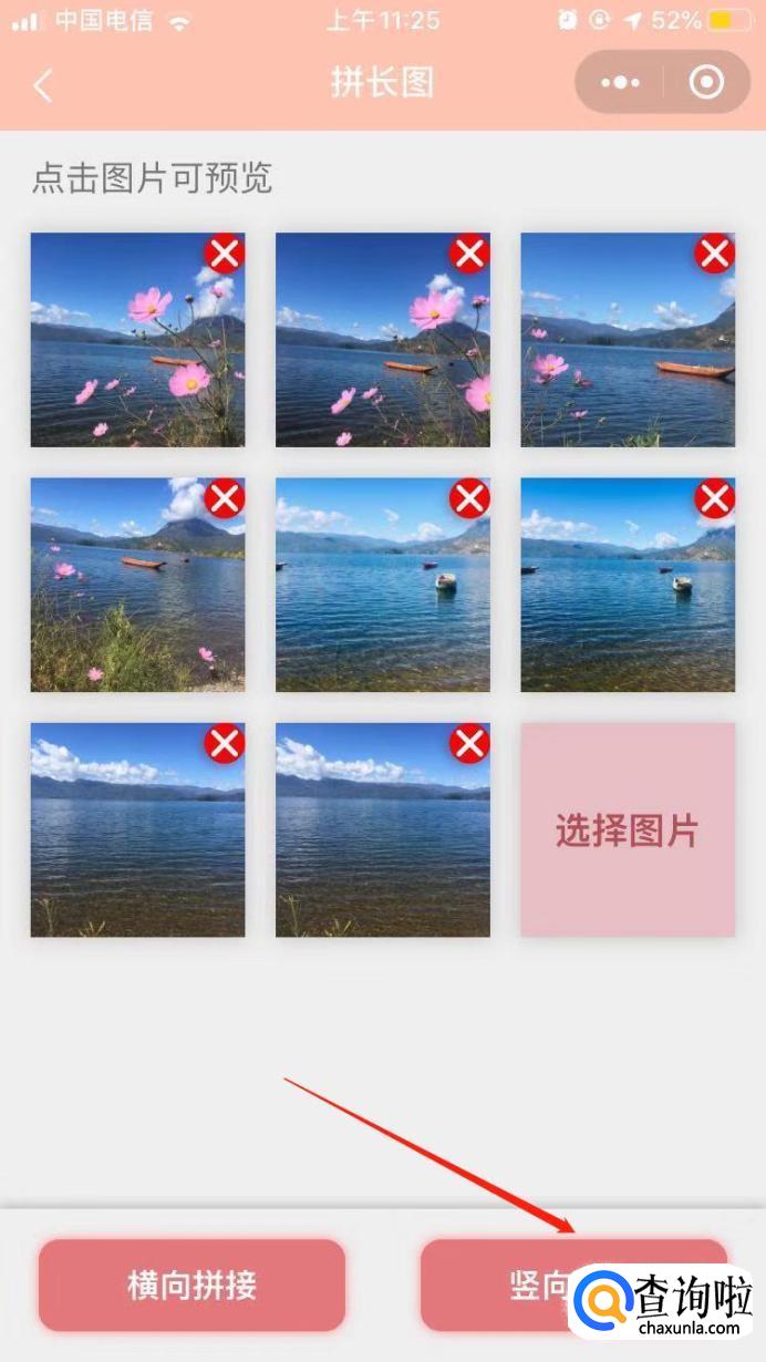 我们在进入了过后,点击选择图片,选定好你需要拼接的图片过后,我们点击“完成”。