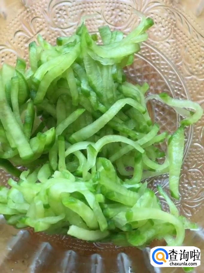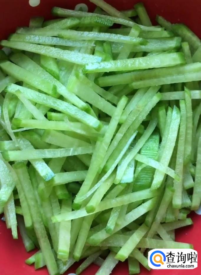 然后我们把青萝卜丝放入一个碗中,加入适量的盐,抓拌均匀腌制10分钟