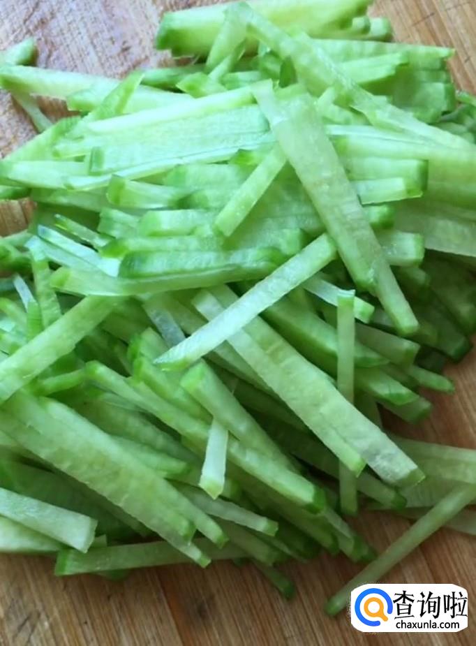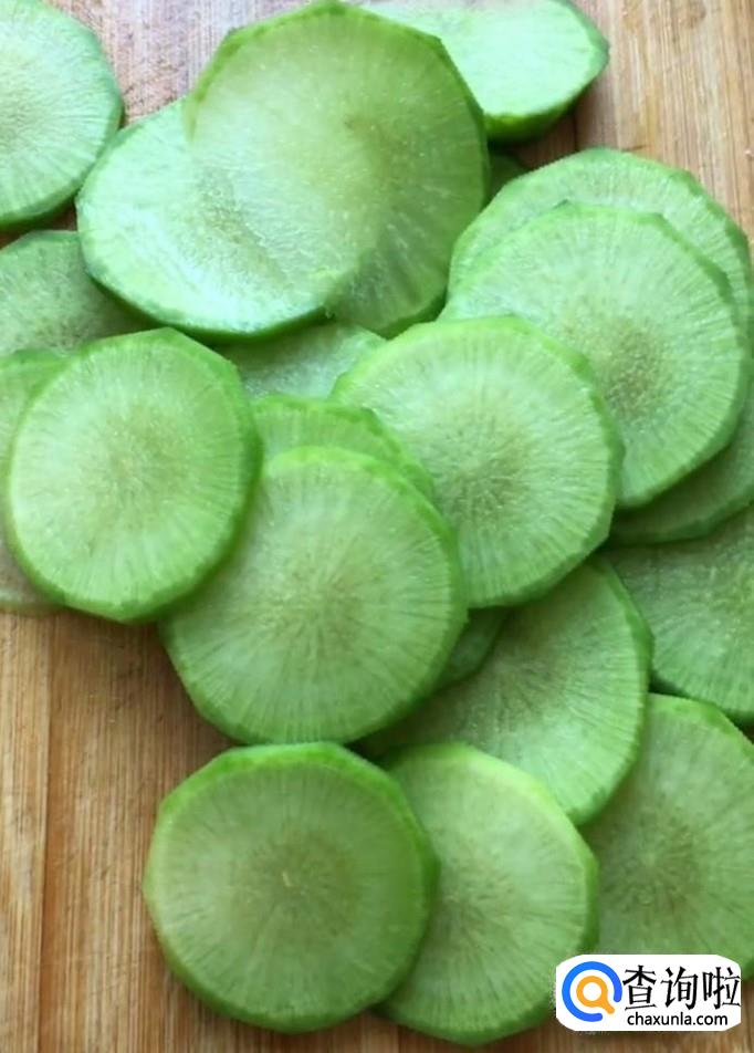 首先,我们准备一个青萝卜,去皮洗净,先切片,再切成丝