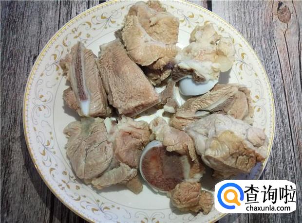 把去掉血水的骨头捞起来,用流动的水冲洗干净浮沫,然后放碟子上备用。