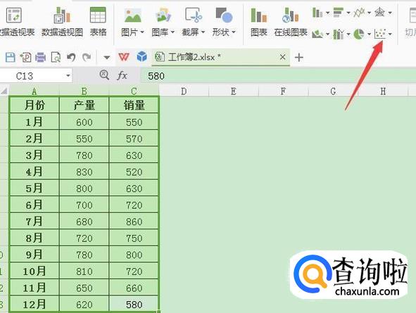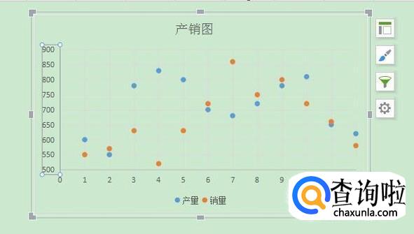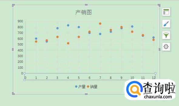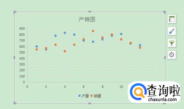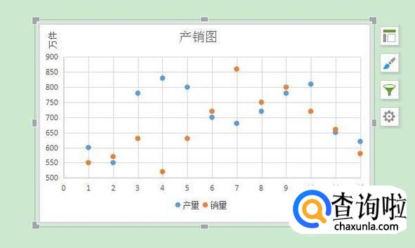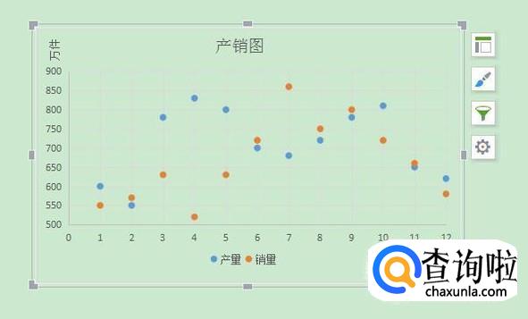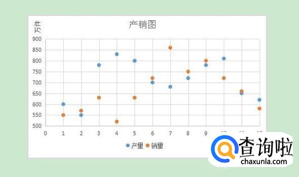 双击纵坐标,修改最小值,由于产量和销量数据均大于500,所以将最小值改为500。