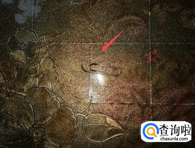 我们找根回形针,然后我们将回形针进行适当的掰出来一些,如图所示的效果;