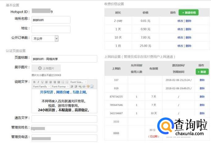 这样,基本的设置就完成了。当然,最后不要忘记参考设备使用指南在拼拼WiFi后台设置好热点,并且在设备里绑定Hotspot ID才能开启Web认证和WiFi收费功能。