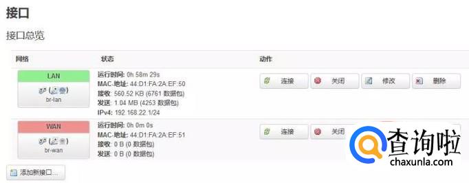 点击顶部的“网络”和“接口”菜单,进入接口总览页面。