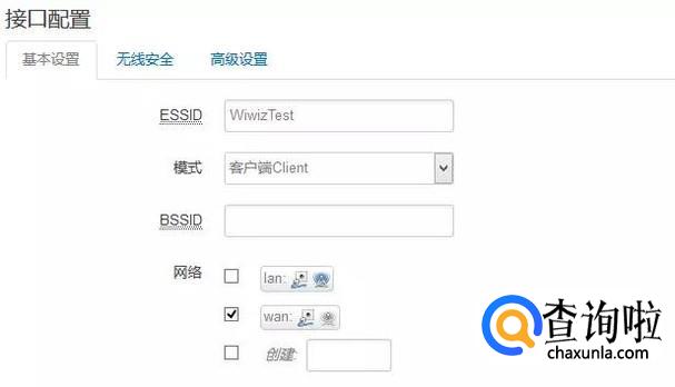 (1) 基本设置标签页内的“ESSID”应填写为上级WiFi的SSID。
