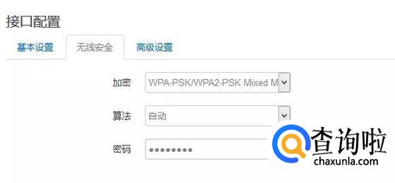 (4) 无线安全标签页内的各项表示上级WiFi的加密方式,应与上级WiFi的实际情况一致。