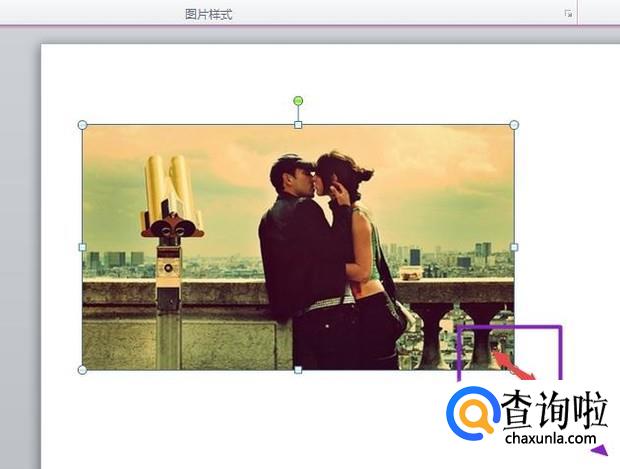 之后我们将鼠标放在图片的右下角,出现图示中的符号事,我们向右下角拉升;