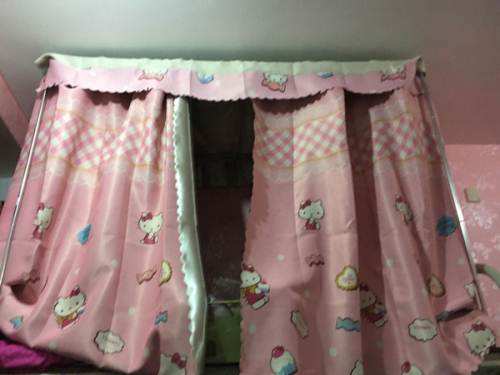 在大学尤其是女生宿舍,这些85后或者90后的大学生会为自己的床设计一扇门——“床帘”。将原来就是一间小房间分成了几个更小的区域,这就所谓的床帘现象。有人认为这样是维持自己的私人空间,“床帘”在某种程度上是有一定的作用,然而另外一些的意见认为如果一个寝室的几个人还要遮遮掩掩的,那于同学之间的交流与感情是有障碍的。