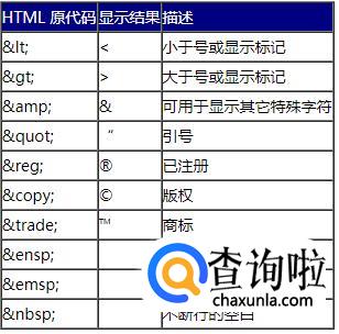 HTML 原代码 显示结果 描述