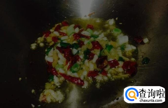 锅中加油,待油8分热时加入辣椒,老姜,蒜,老抽爆炒