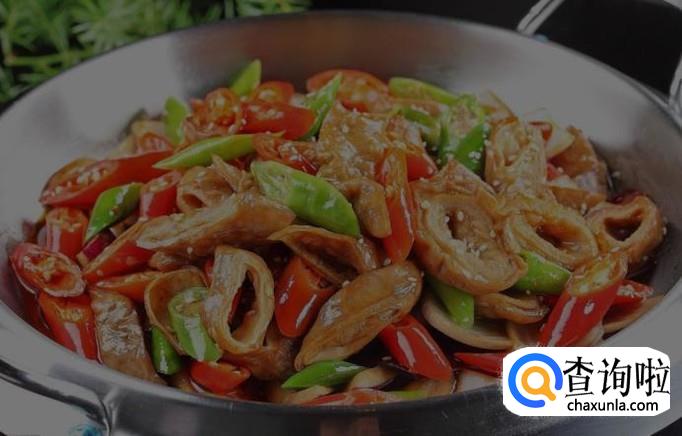 然后加入备好的脆肠,翻炒2分钟后加入一点点料酒,然后一直翻炒至其熟,加盐,鸡精,花面,炒匀,起锅
