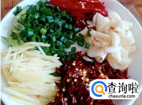 生姜切成丝或者片都可以,大蒜拍碎,葱切段,红辣椒对半切,喜欢吃香菜的准备一颗香菜切成段。