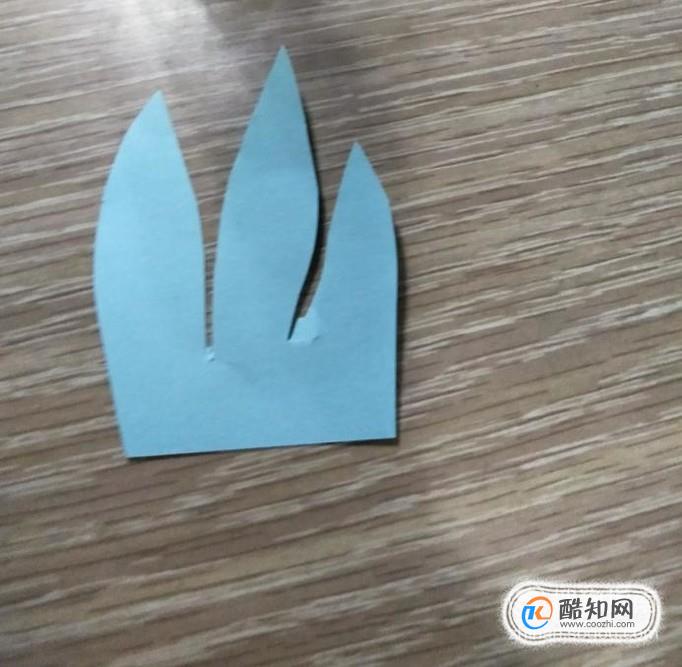 然后将一张蓝色的纸剪成如下图所示状,再在其一面上粘上胶水,
