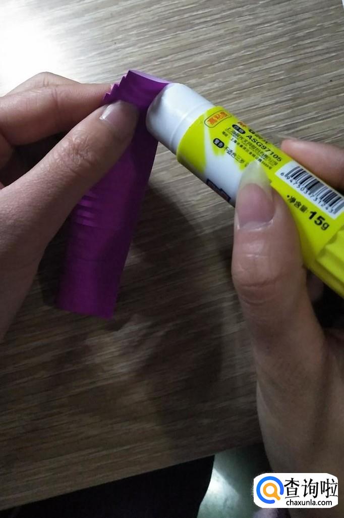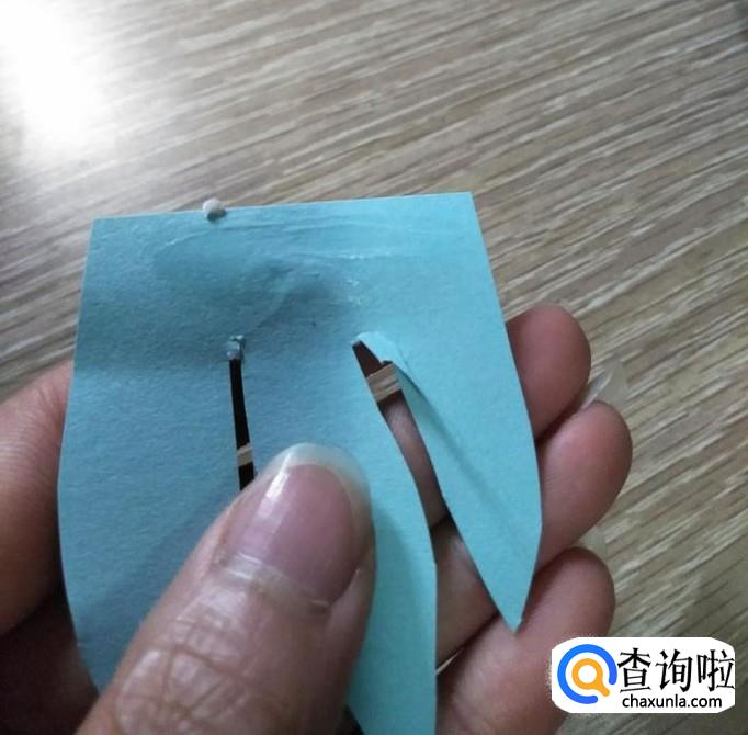 然后再折回去,注意不能用力捏,然后在未剪到的一端图上胶,