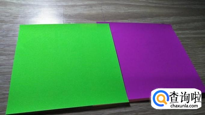 选择一紫一绿两张纸,一般7x7cm即可