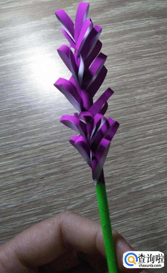 将叶子裹着粘在花下部位置,如下图,到此,薰衣草就做好了,你看懂了吗?