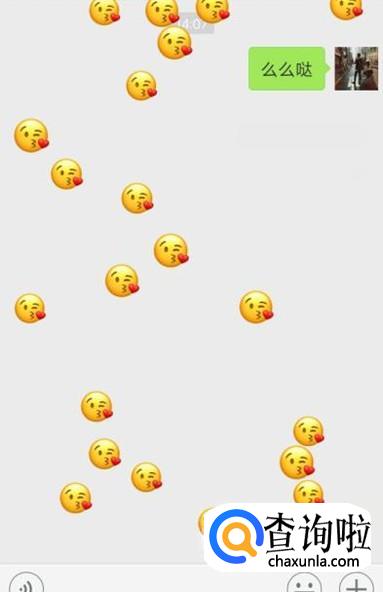 给好友发送“么么哒”,在屏幕上就会掉落“亲亲”的表情,如图所示。