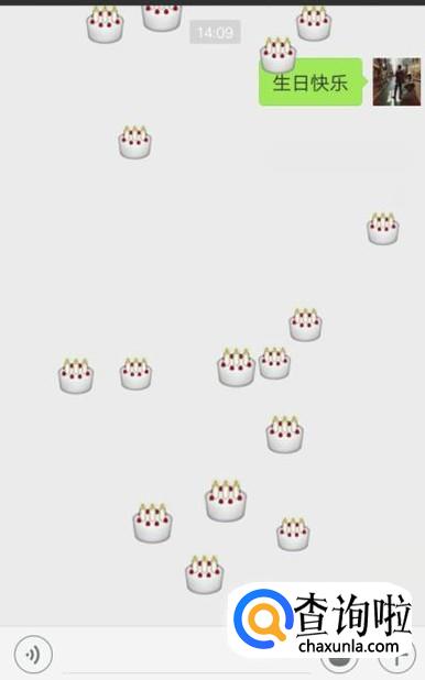 给好友发送“生日快乐”,在屏幕上面就会掉落“生日蛋糕”,如图所示。