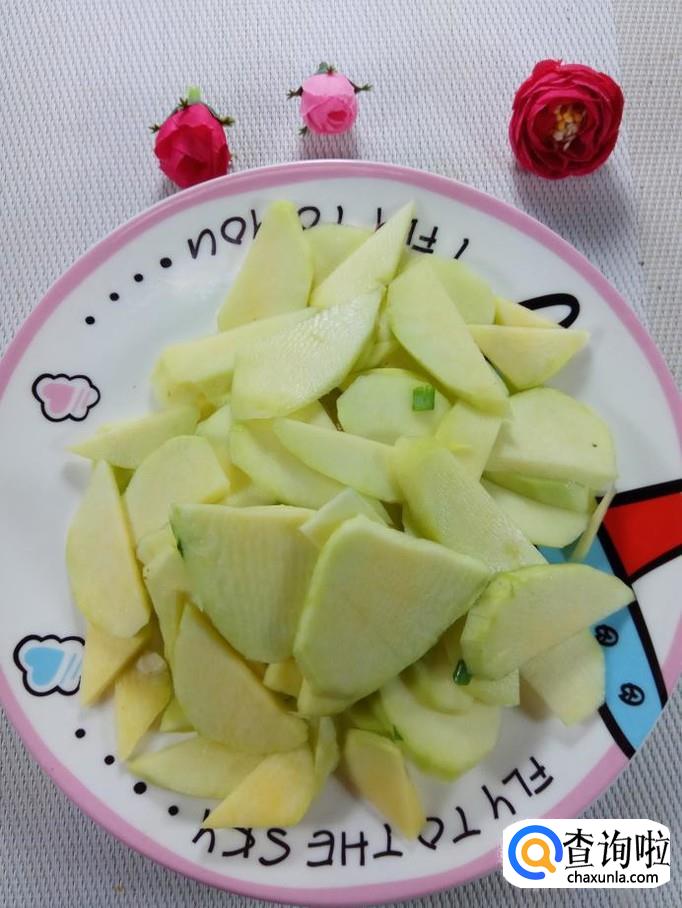 准备适量南瓜,洗净去皮后,切成片,放入盘中备用。