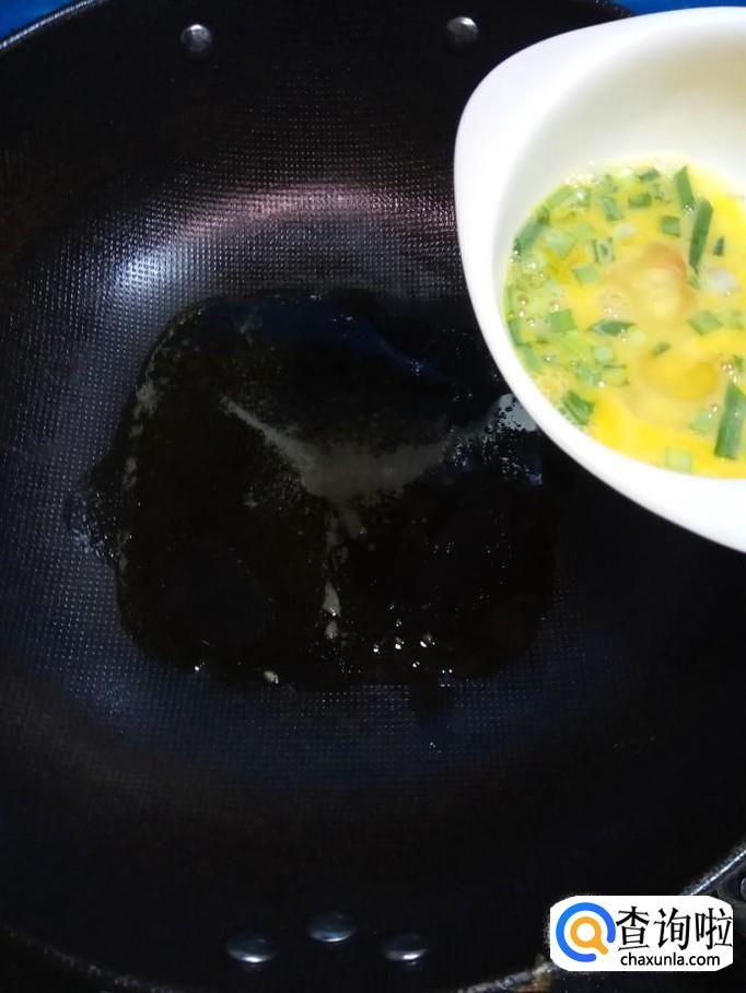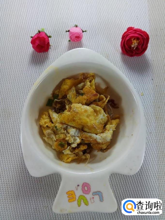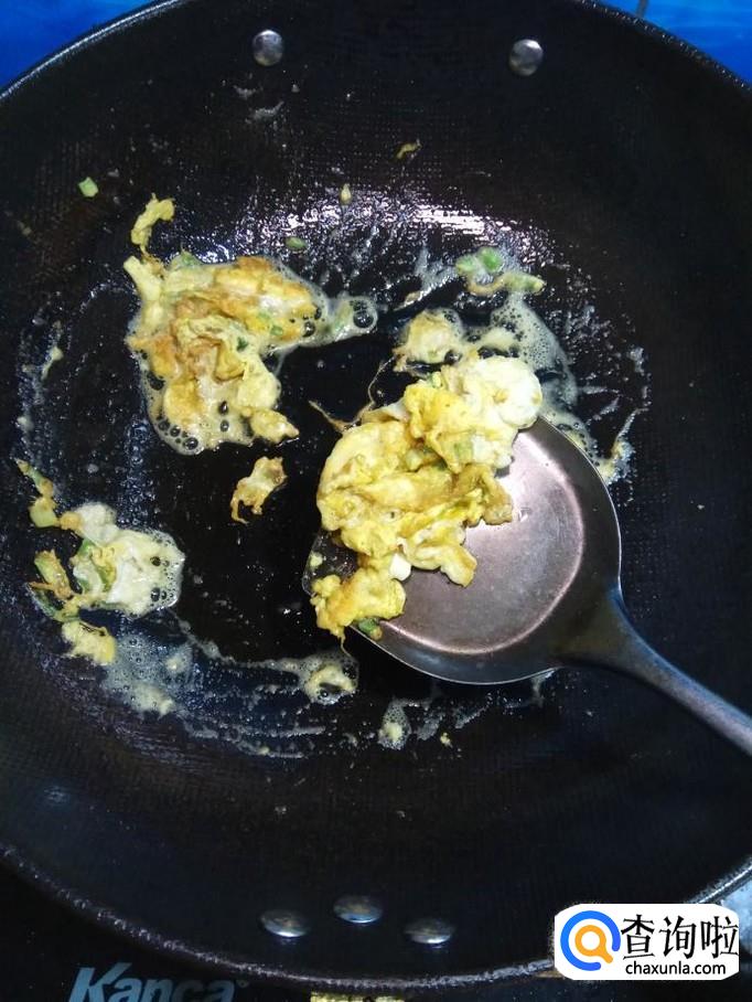 锅中放入适量油,油热后,将鸡蛋液倒入锅中炒熟,盛出备用。