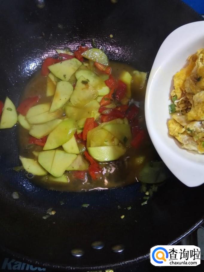 加入适量生抽,增亮色泽,还可以加入少许清水,防止粘锅。