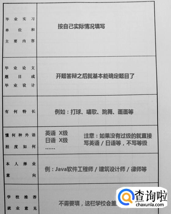 这一页中按照自己的实际情况填写,除了学校推荐就业意见不填,其余的都要工整填写。