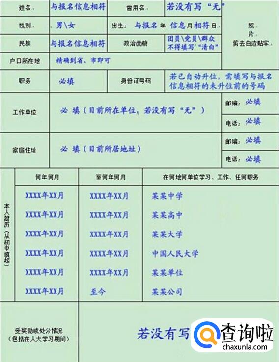 填表说明大家一定要认真阅读,特别提示:填表时必须用黑笔墨迹签字笔或钢笔填写,每项都要按规则准确工整填写,不能留白。