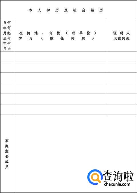 本人学习及社会经历,从小学开始填写,时间为入学到毕业的时间段,