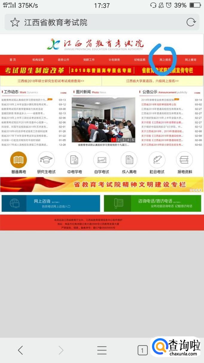 首先,进入你所在的省份的教育考试网。如小编在江西省读书,进入的就是江西教育考试网。