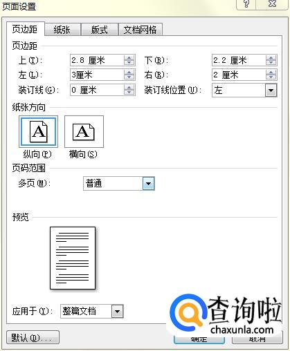 论文页面设置。论文的页面设置也是非常重要,每个学校要求是不一样的。比如,毕业论文(设计)要用A4复印纸纵向、双面打印。页边距:上边距:28mm;下边距:22mm;左边距:30mm;右边距:20mm;装订线:0cm、页眉1.8cm、页脚1.4cm、对称页边距。