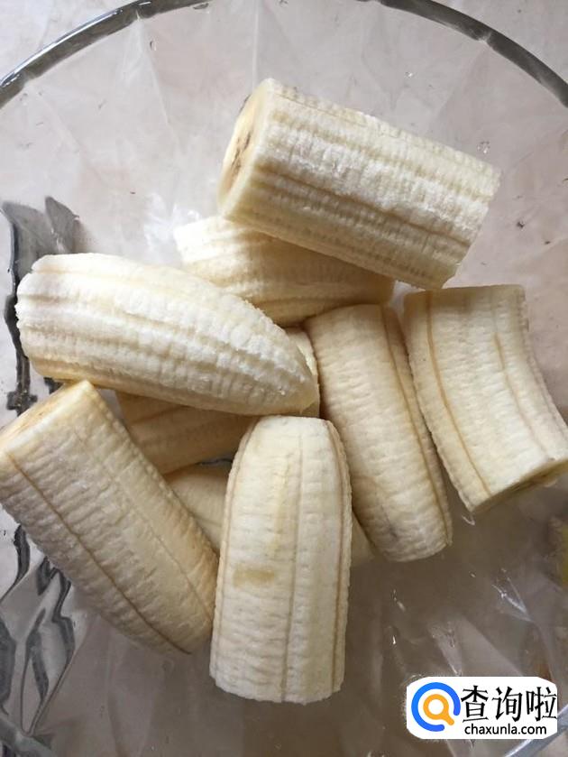 最好挑选形状有些弯的香蕉,然后把香蕉皮剥掉,然后留下香蕉头,因为弯弯的像椰子树的树干。