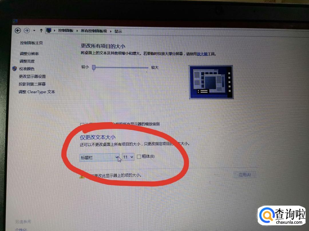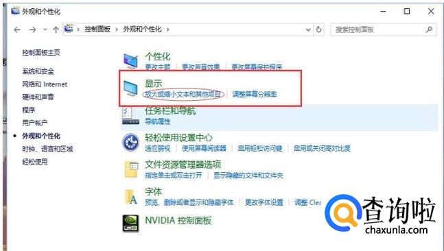 或者从【控制面板】进入,如图所示进行点击操作以更改字体大小。