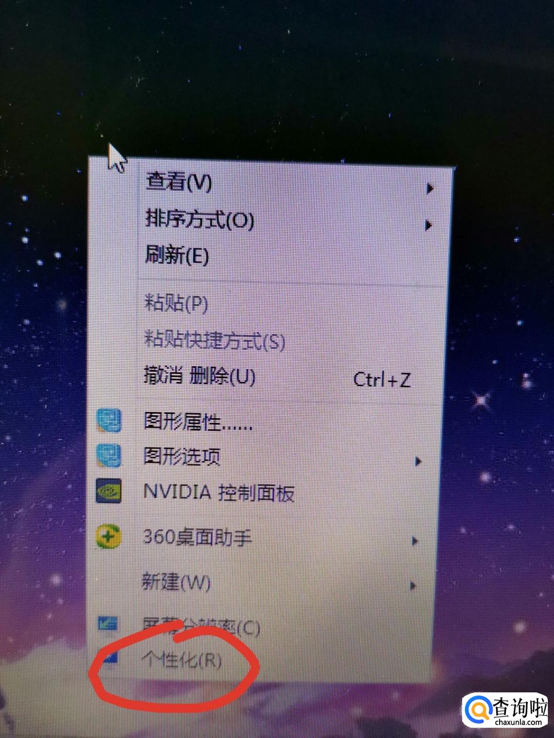 首先,在桌面空白处单机右键,点击“个性化(R)”