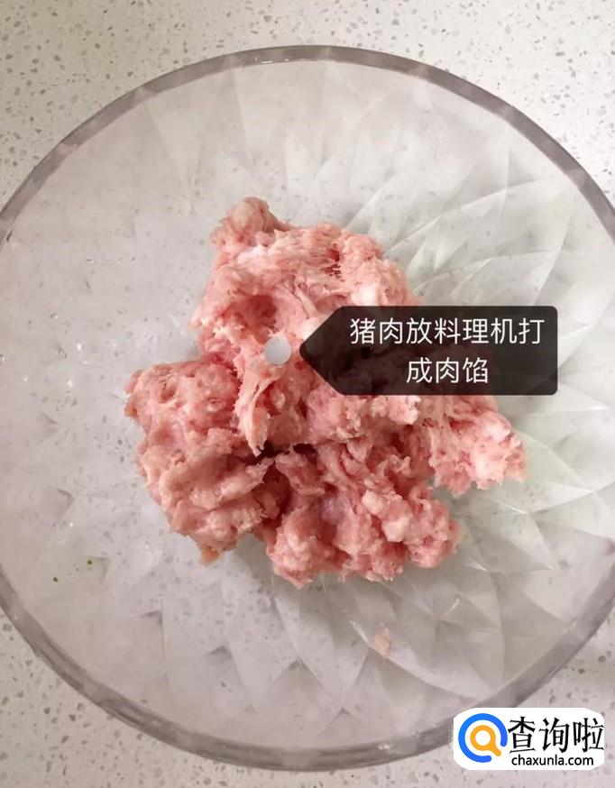 然后把猪肉放入料理机中打成肉馅,如下图所示。
