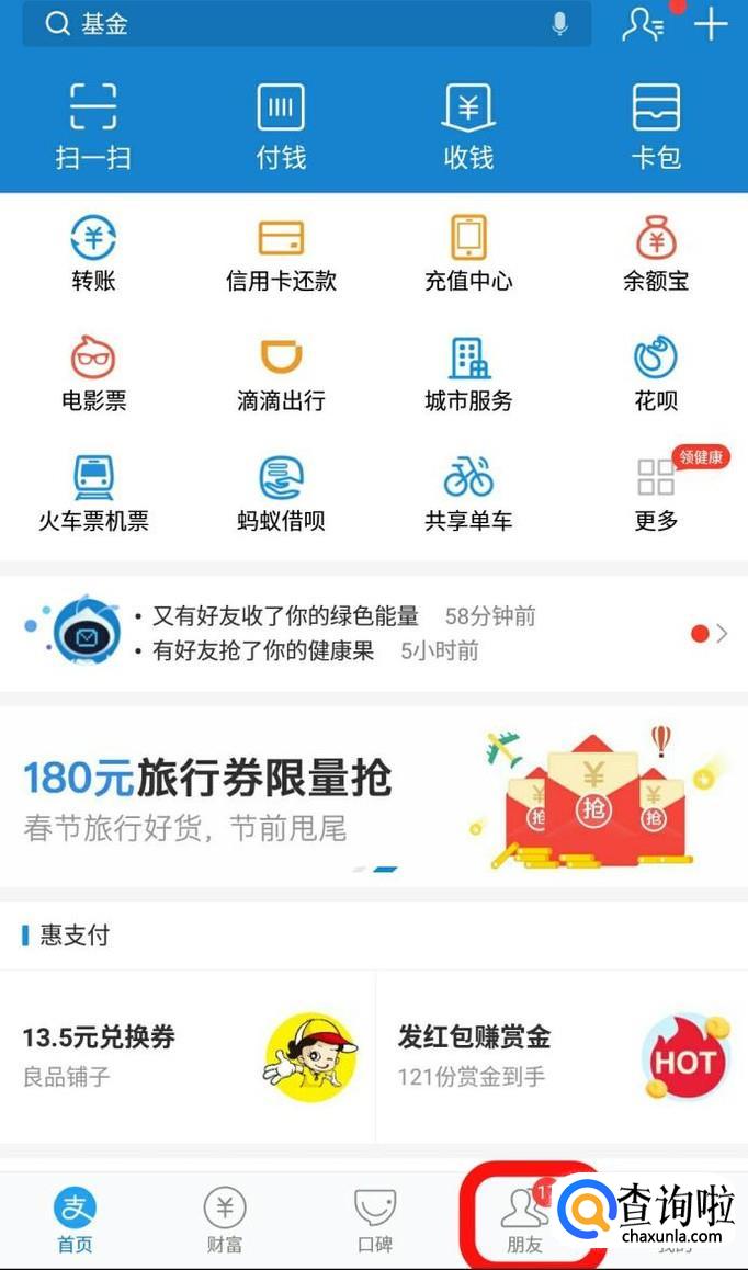 如果是朋友转账红包,点击“朋友”后,进入到我的朋友的页面。