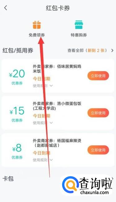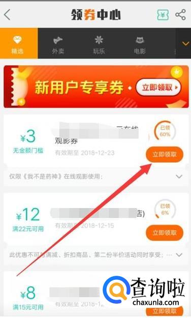 进入之后,点击“免费领券”,进入下一页面,如图所示。