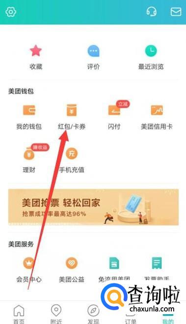 进入之后,点击“红包/卡券”,进入下一页面,如图所示。