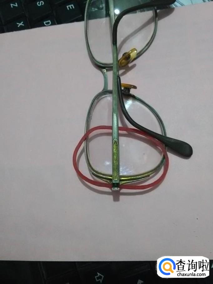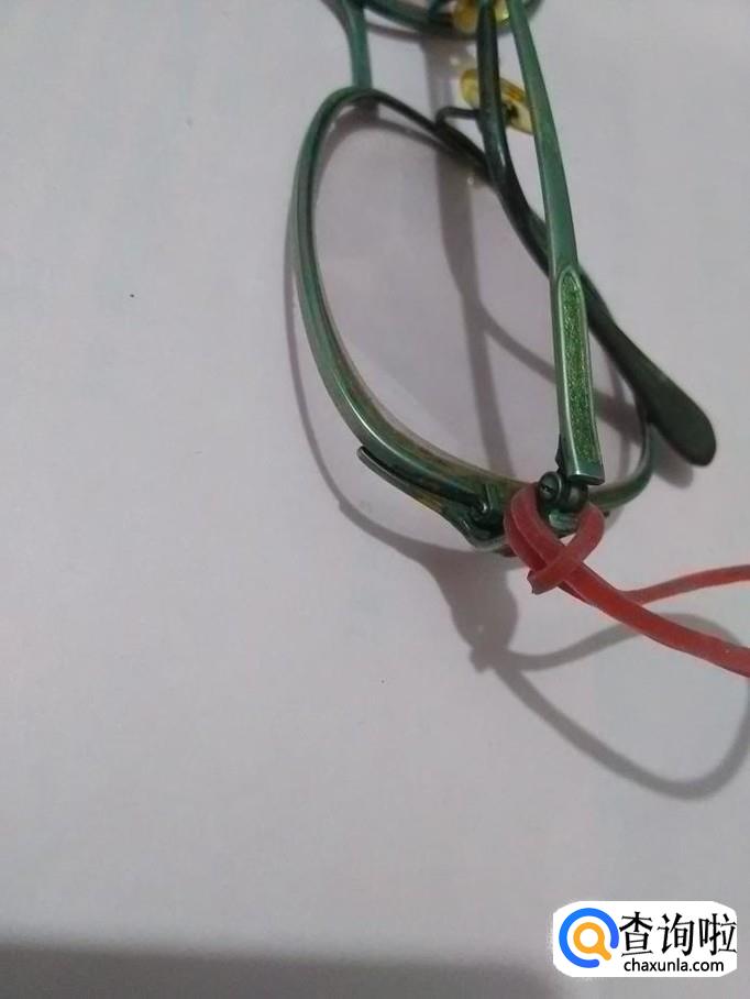 将一个皮筋放在眼镜腿和眼镜框的中间。