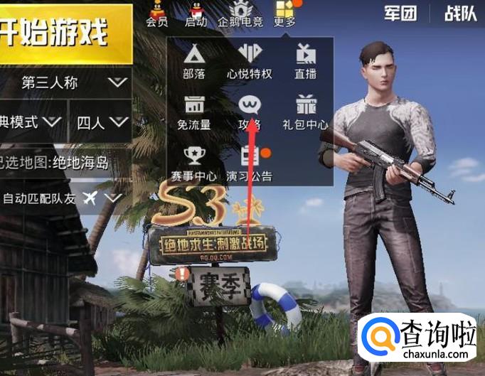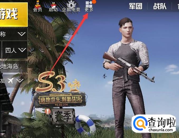 首先你要做的就是打开游戏的客户端,然后在上方找到更多,然后点击进入,如下图。