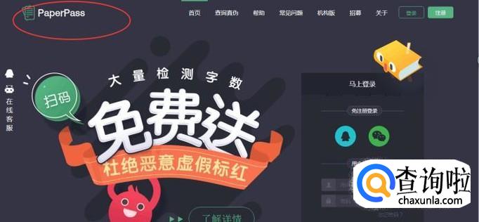 就可以跳转到paperpass的网站首页了,首先需要登陆网站,点击QQ登陆,如下图所示: