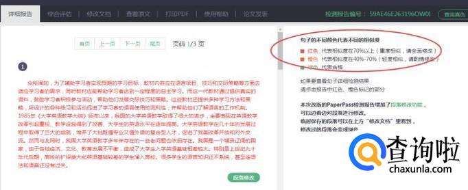 等几个小时之后,就可以来到网站下载查重报告,根据查重报告的标红信息进行修改,降低查重率即可,如下图所示: