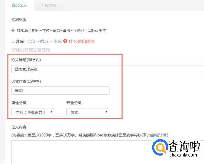 输入论文标题、论文作者,选择论文属性和专业,然后点击【提交检测】即可,如下图所示: - 04