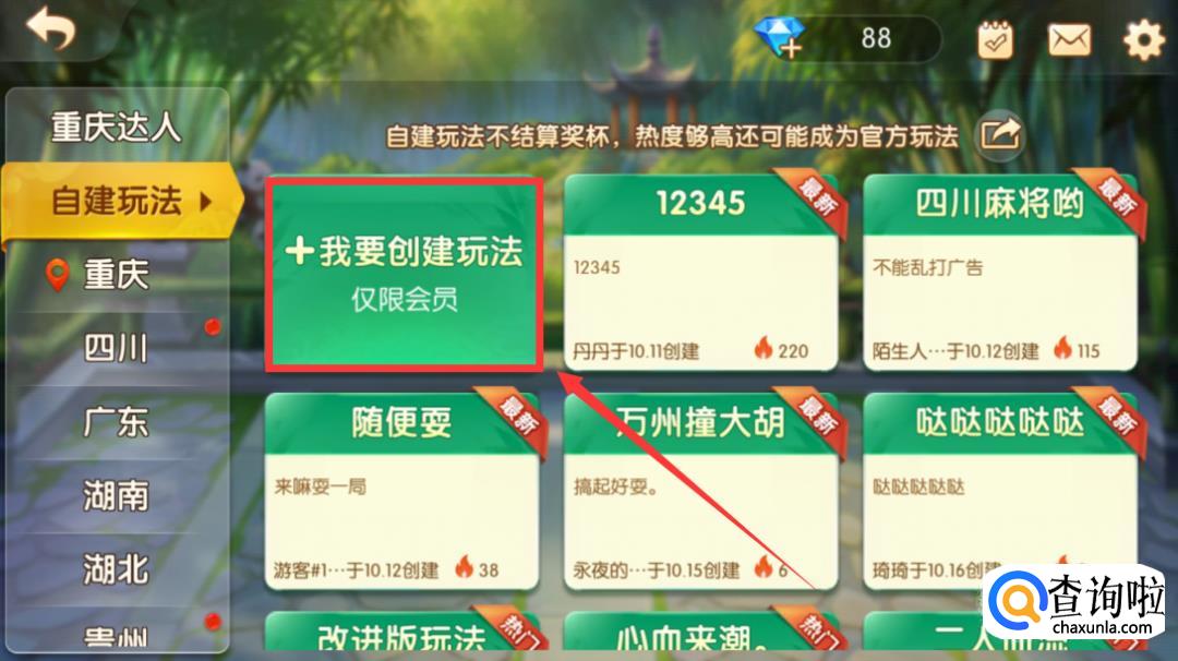 进入后,在该页面的左上角有个【自建玩法】,点击进入。