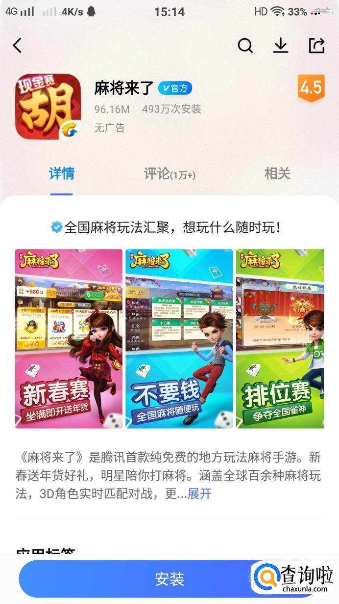 下载并安装【麻将来了】,安装完成后,打开游戏。