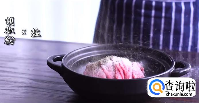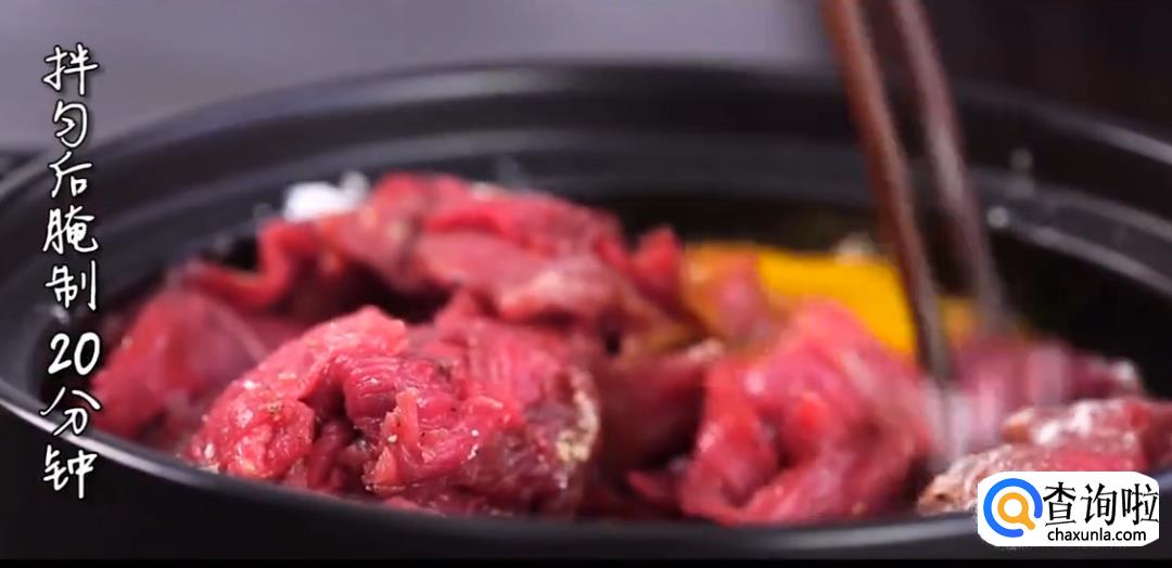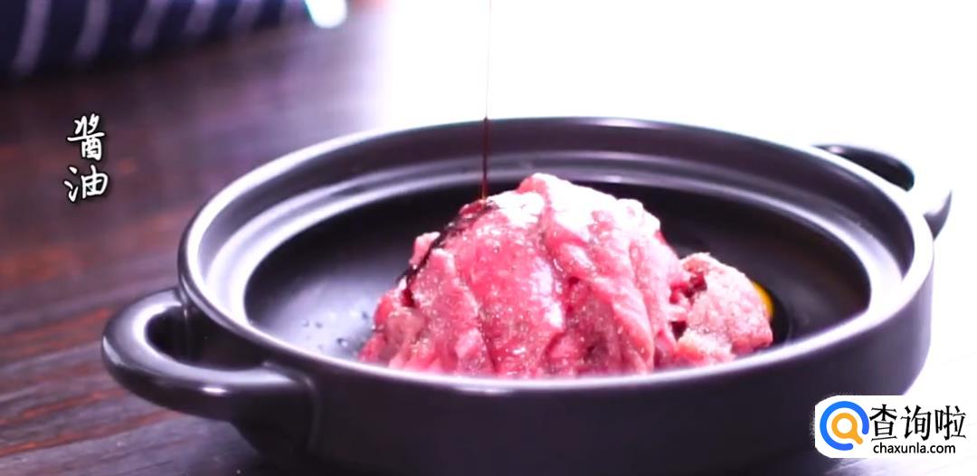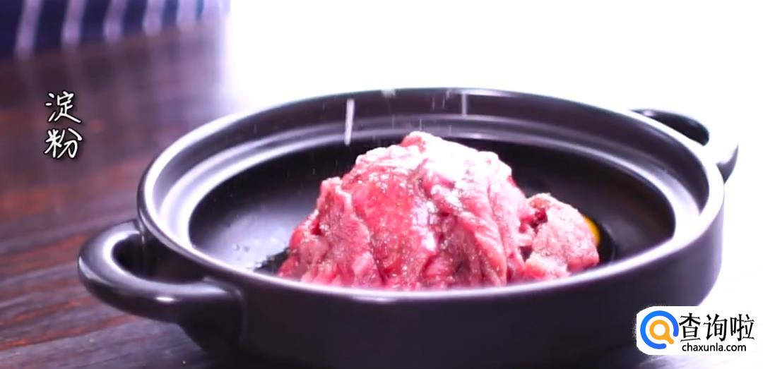将牛肉切片,打入鸡蛋,加盐,淀粉,生抽,胡椒粉搅拌均匀后腌制。