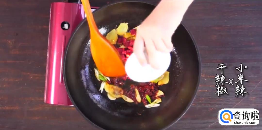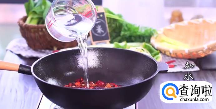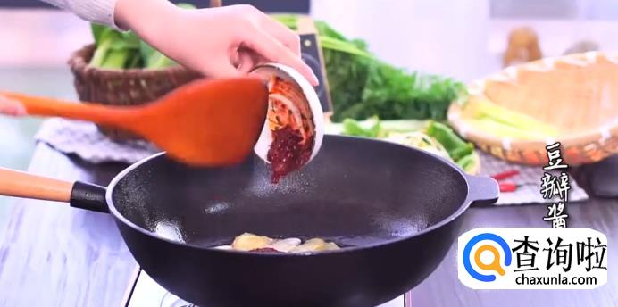 热锅起油,下豆瓣酱,葱姜蒜,小米椒,干辣椒不断翻炒出香。