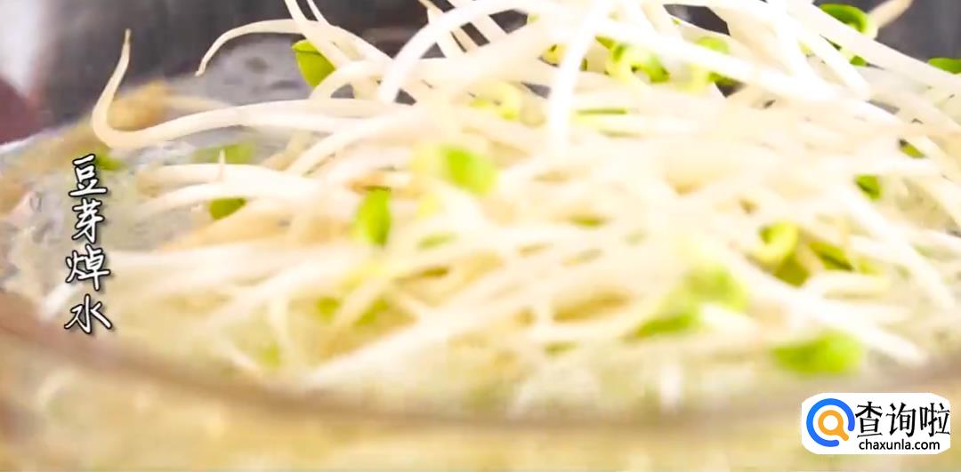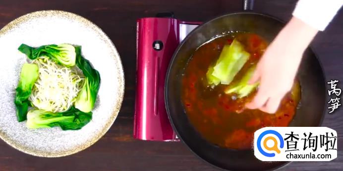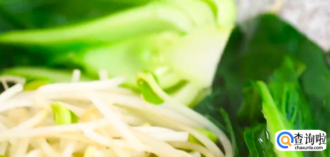 将豆芽,上海青下锅焯水后捞出摆盘。