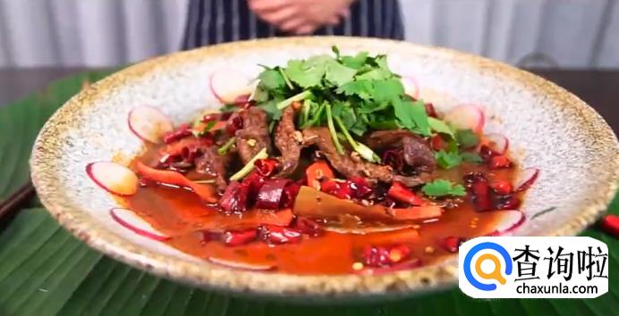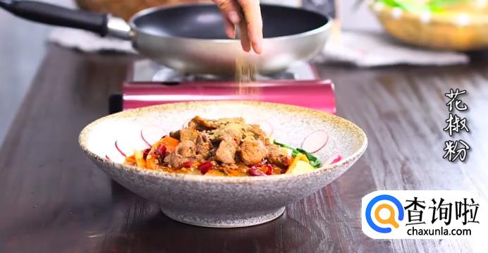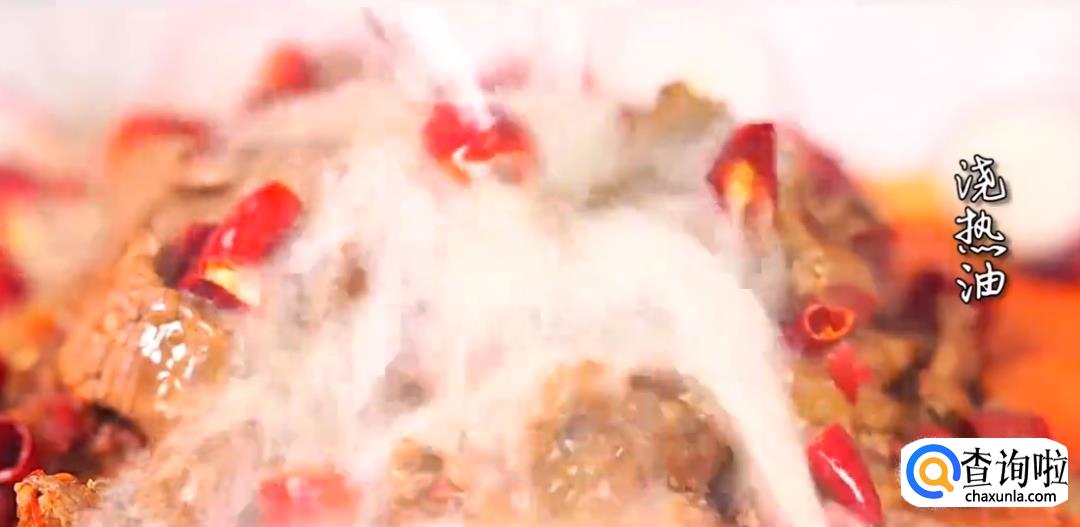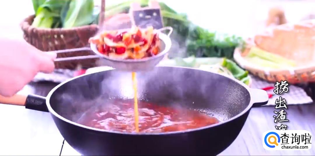 将锅内食材捞出,然后把汤汁淋在食材上,撒上花椒粉和干辣椒段。