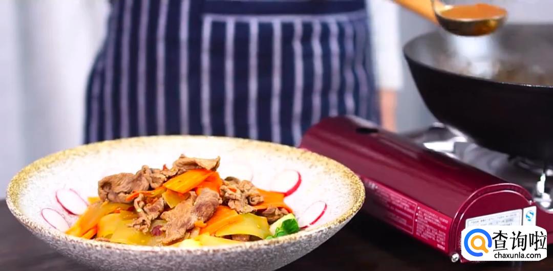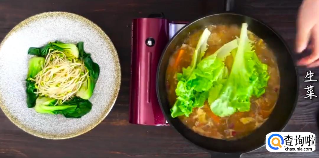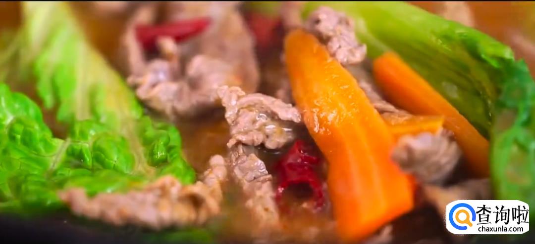 牛肉,上海青,胡萝卜下锅炖煮,最后下生菜,断生即可。